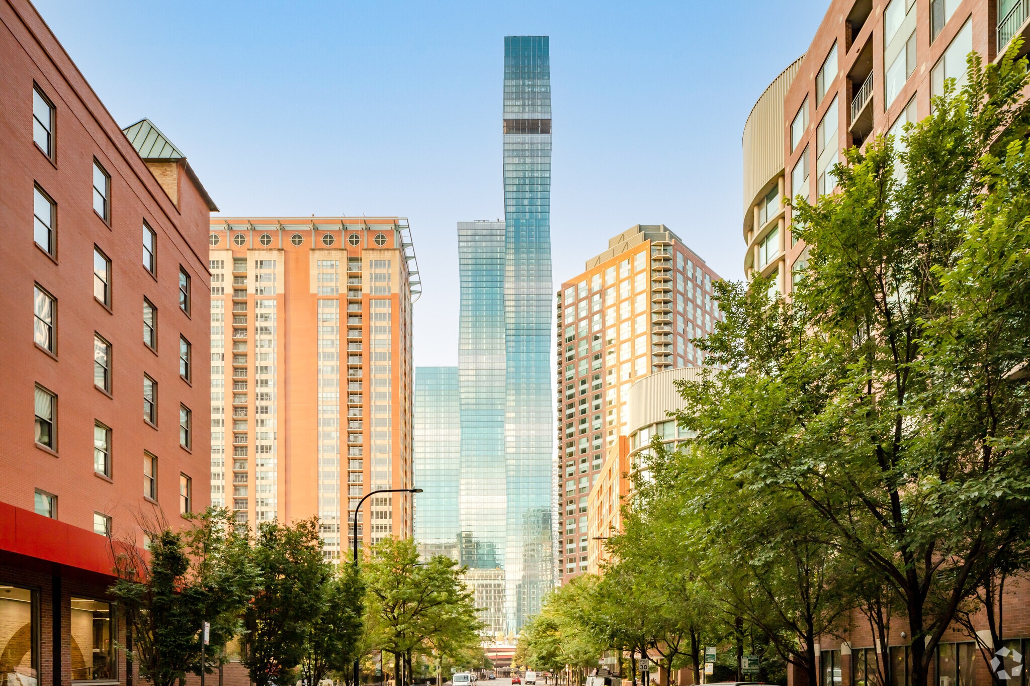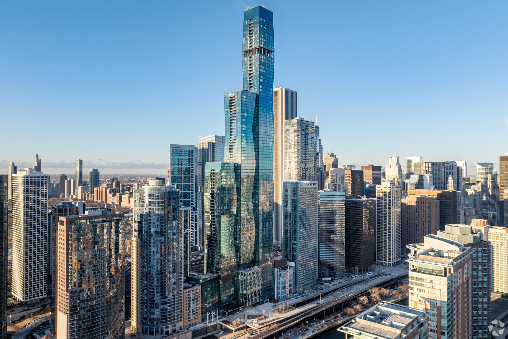 The St. Regis Chicago, designed by renowned architect Jeanne Gang of Studio Gang, stands as a striking addition to Chicago's iconic skyline. Completed in 2020, this 95-story tower houses 406 luxury condominium units, offering residents an unparalleled living experience in the vibrant New East Side neighborhood. The building's crystalline form, inspired by the facets of a shimmering gem, creates a distinctive presence that captures attention from every angle. Situated at the confluence of the Chicago River and Lake Michigan, The St. Regis Chicago provides residents with breathtaking views of the city's architectural wonders, expansive waterways, and lush parks.