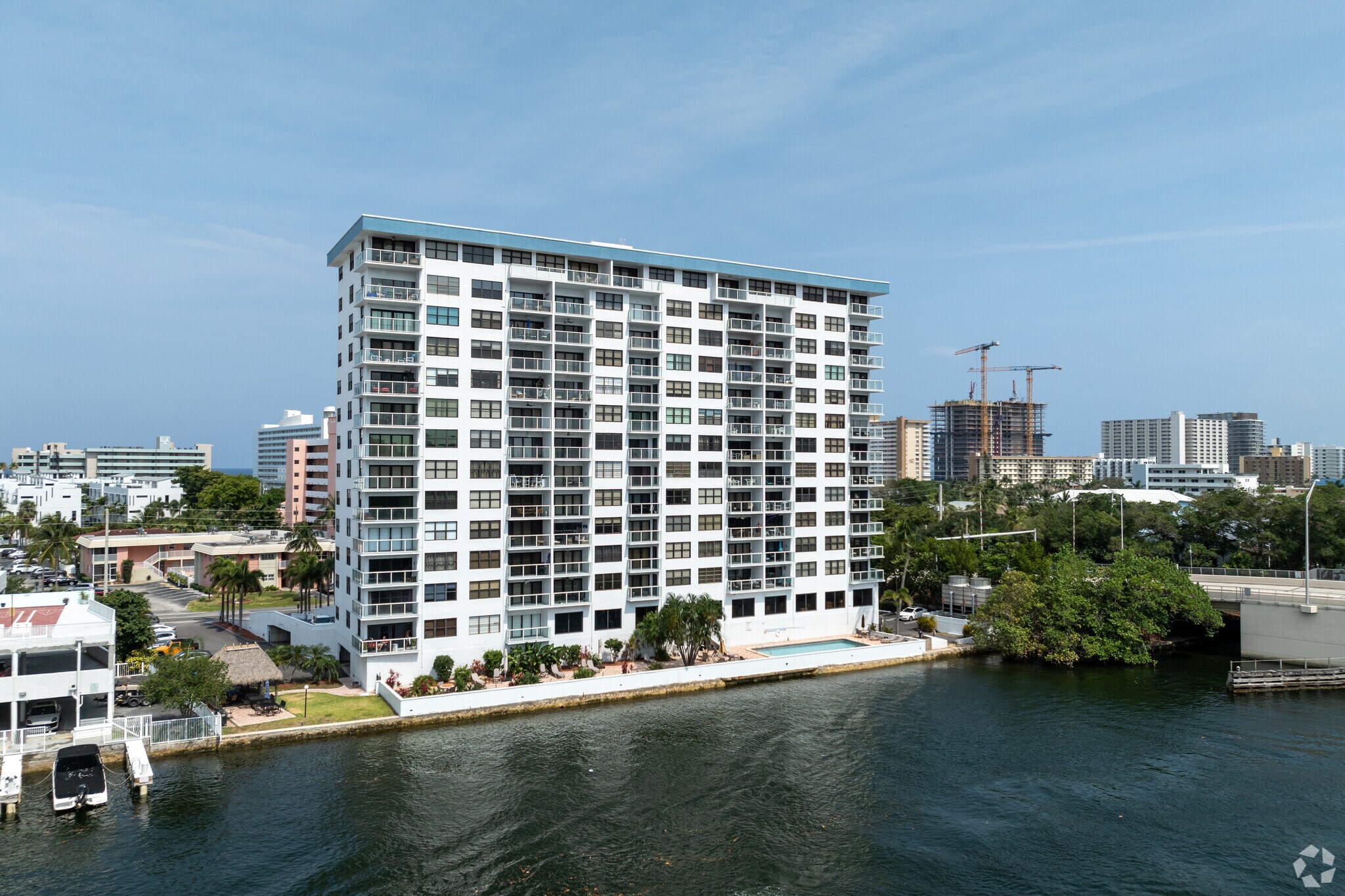 The Waterbury is a 15-story condominium building located directly on the Intracoastal Waterway in Pompano Beach, Florida. Completed in 1975, this building comprises 84 units, each offering stunning views of either the Intracoastal or the Atlantic Ocean. The straightforward, modern design features balconies on each floor, providing residents with ample outdoor space to enjoy the scenic surroundings. The Waterbury is ideally situated just a short walk from the beach, making it a prime location for those who appreciate coastal living.