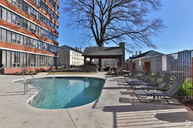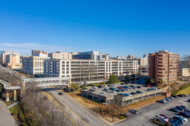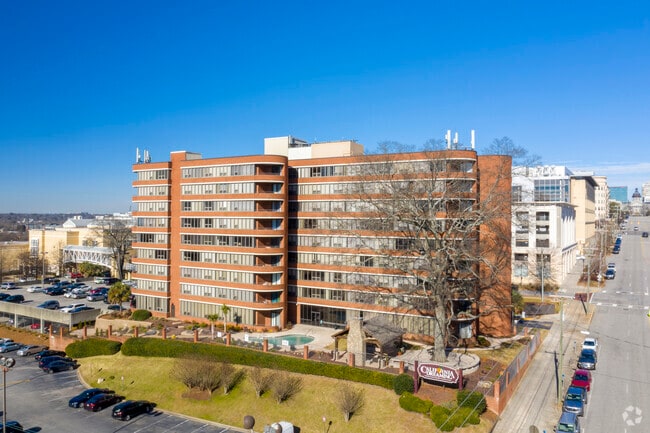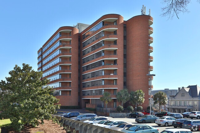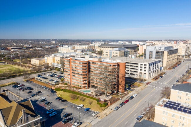 The Wilshire House stands as a nine-story condominium building completed in 1986, offering a total of 70 units. Located in the vibrant University Hill neighborhood of Columbia, it provides a convenient and central living experience. The building's curved facade and continuous horizontal balconies give it a modern appearance, fitting seamlessly into the dynamic downtown landscape. Its proximity to the University of South Carolina makes it an attractive option for those seeking accessibility to campus life and the surrounding amenities.