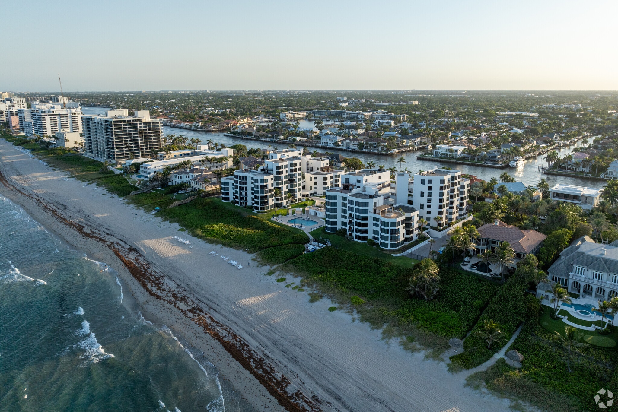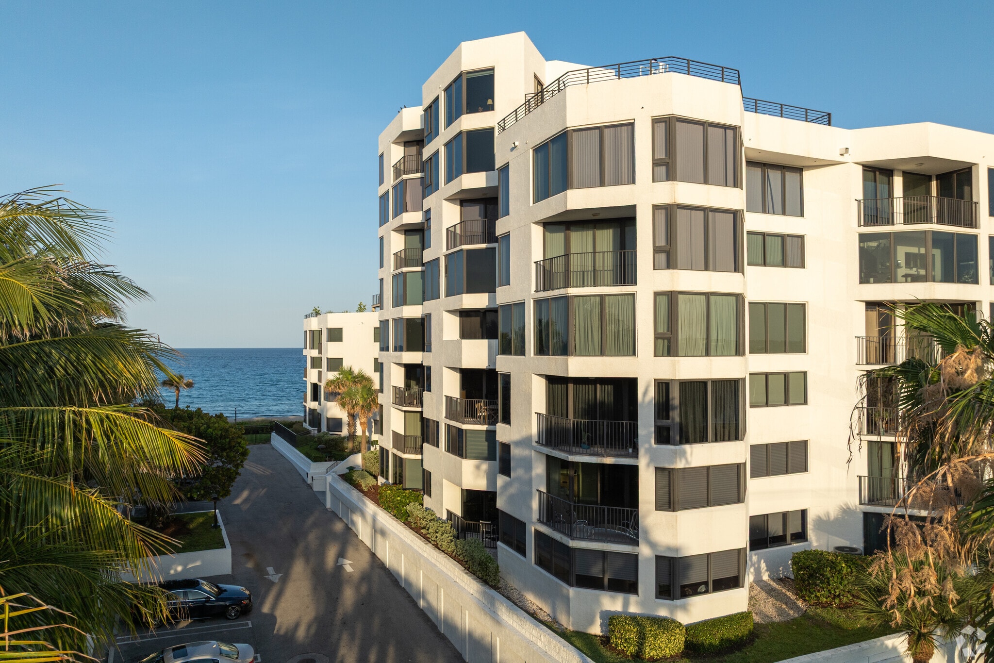 The Townhouses of Highland Beach, completed in 1981, offer a prime oceanfront location in Highland Beach. This four-story condominium complex houses 69 units, providing residents with direct access to the Atlantic Ocean. The building's design maximizes its coastal setting, with many units offering panoramic views of both the ocean and the Intracoastal Waterway. Situated between Boca Raton and Delray Beach, this residential enclave combines the tranquility of beachfront living with proximity to urban amenities.