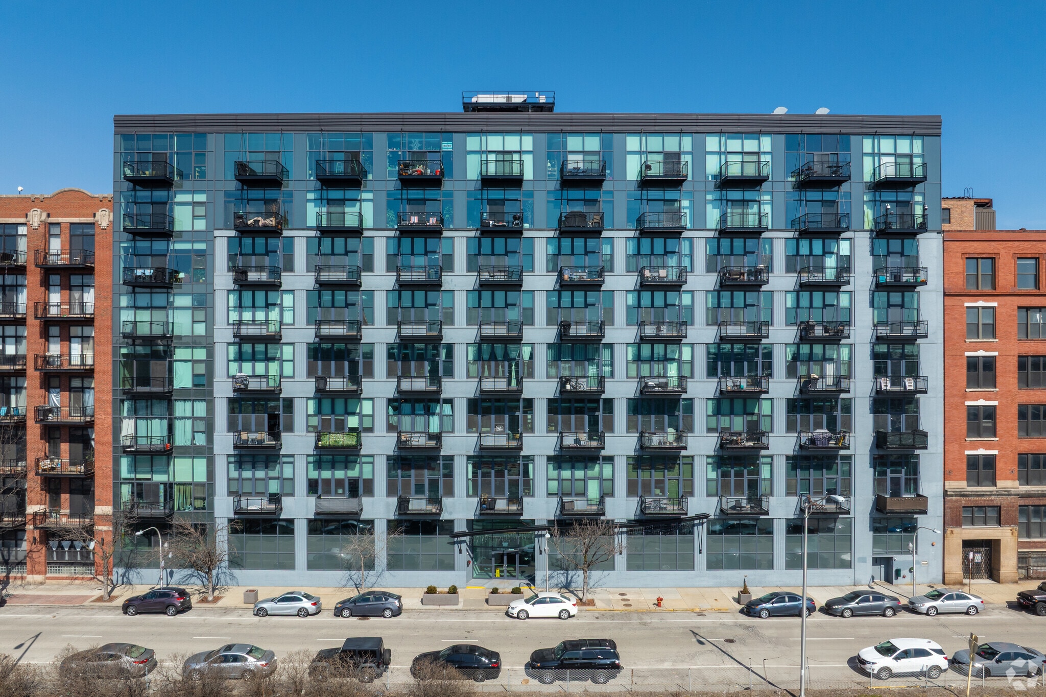 Van Buren Lofts, a converted industrial building from 1920, stands as a testament to the West Loop's transformation. This 8-story condominium, housing 351 units, blends historic charm with contemporary living. Located in the heart of Chicago's vibrant West Loop neighborhood, the building offers residents a unique urban experience. Its modern glass facade and grid of balconies provide each unit with coveted outdoor space, while the interior maintains the character of its industrial past with soaring ceilings and expansive windows.