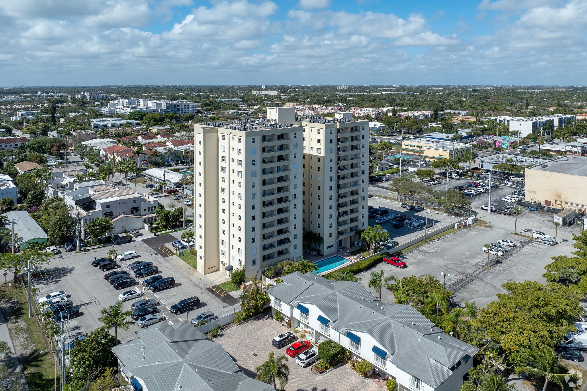 Victoria Park Towers, a 13-story condominium building, stands as a prominent fixture in the heart of Fort Lauderdale's sought-after Victoria Park neighborhood. Completed in 1970, this building comprises 113 units, offering residents a blend of convenience and community. Its location provides easy access to the vibrant downtown area while maintaining the charm of an old-school Florida neighborhood.