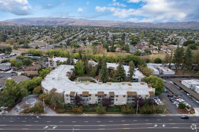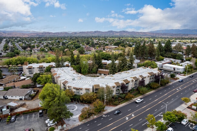 Villa Sonata is a three-story condominium complex located in the heart of South Livermore. Completed in 1974, this building houses 154 units and features a stucco exterior with tiled roofing. The curved facade follows the street line, giving the building a distinctive look. Balconies with metal railings add to the charm, providing residents with private outdoor spaces.