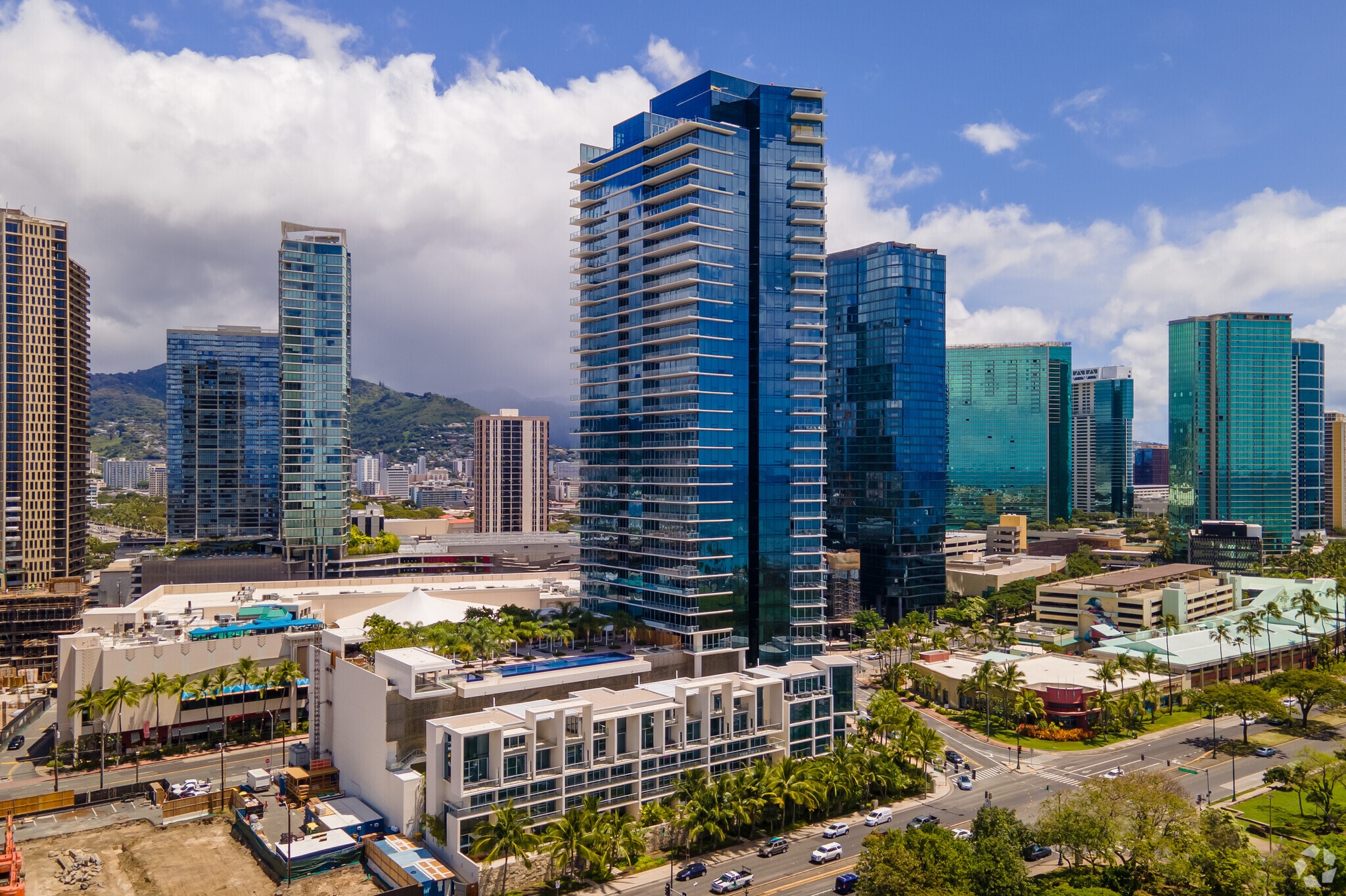 Waiea, designed by Wcit Architects, stands as a 36-story architectural marvel in the vibrant Kaka'ako neighborhood of Honolulu. Completed in 2016, this high-rise features 171 luxurious condominium units. Its distinctive curved glass facade sets it apart on the skyline, offering residents a blend of modern design and unparalleled views of the Pacific Ocean and Diamond Head. Located just across from Ala Moana Beach Park, Waiea provides a unique living experience that combines urban convenience with coastal serenity.