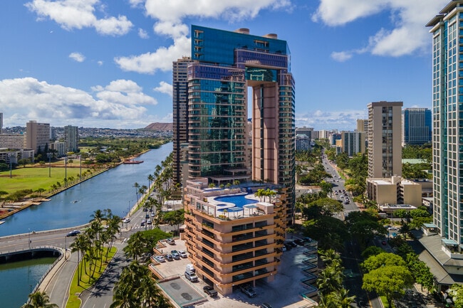 Waikiki Landmark Apartments stands as a distinctive presence at the entrance to world-renowned Waikiki. Completed in 1993 by architect Archinoetics Llc, this 35-story condominium complex features a unique twin-tower design connected by a skybridge. The building houses 217 units, offering residents a blend of urban convenience and resort-inspired living. Its location at the crossroads of Waikiki and Ala Moana provides easy access to beaches, shopping, and dining, making it an ideal home for those seeking to immerse themselves in the vibrant Honolulu lifestyle.