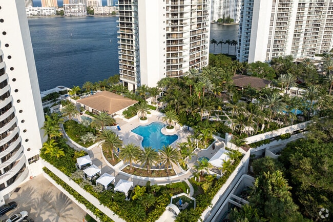 Williams Island 2800, a 32-story condominium tower completed in 1990, stands as a prominent fixture in the exclusive Williams Island community. Designed by Robert S Wennett And Mario Cader Frech Foundation, this high-rise offers 179 residences with sweeping views of the Intracoastal Waterway, Maule Lake, and the Atlantic Ocean. The building's curved façade and wrap-around balconies create a distinctive silhouette against the Miami skyline. Situated between Maule Lake and Dumfoundling Bay, Williams Island 2800 provides residents with a coveted address that combines waterfront living with easy access to the amenities of Aventura and beyond.