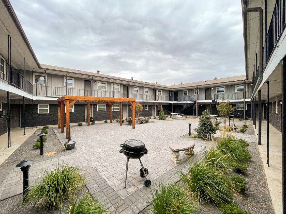 -Great two bedroom close to grocery store, banks, pharmacy, several restaurants in area -Upstairs unit -Stove and fridge included -Tenant pays electric and allocated water -Small cats and dog ok -$20 pet rent per pet -Limit 2 pets per unit -Central heat and air -Picnic commons area
