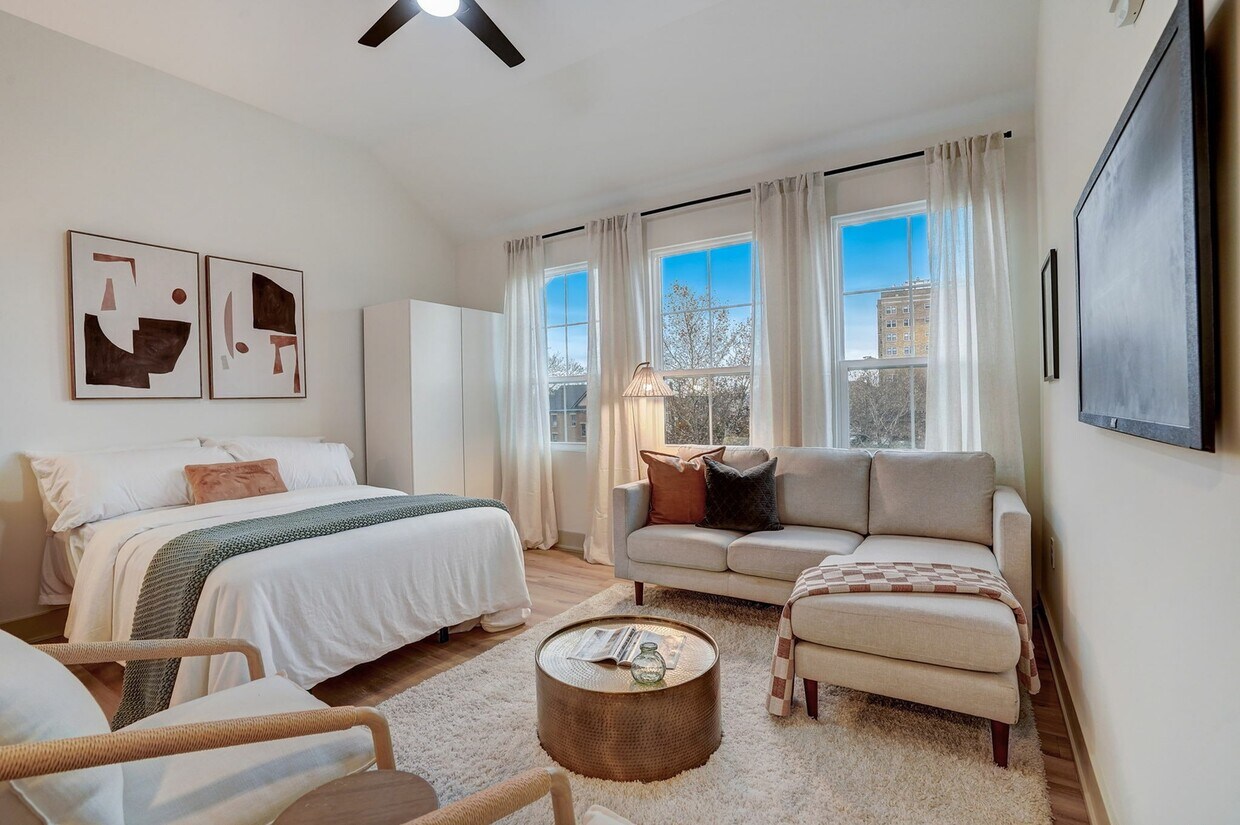 Flats on East Gay tiene de estudios a uno-dormitorio con alquileres que varían de $1,125/mes a $1,275/mes.