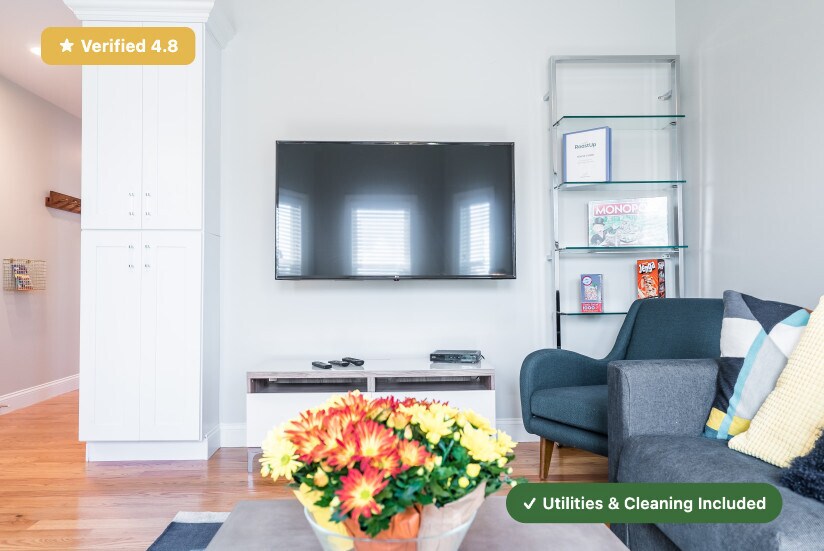 ¡Sin comisión de intermediación! Solo se requiere el depósito del último mes. RoostUp ofrece una habitación privada bellamente renovada en Cambridge. A menos de 15 minutos a pie de la estación de tren Kendall Sq (línea roja de MBTA), en un apartamento de 4 habitaciones y 2 baños. Consulta las más de 100 reseñas de RoostUp con una calificación promedio de 4.8 estrellas en Google y Facebook. El concepto todo incluido de RoostUp está completamente amueblado. Cocina totalmente equipada con encimeras de granito, electrodomésticos nuevos y Smart TV 4K. Las comodidades de RoostUp incluyen todos los servicios públicos, wifi de alta velocidad, lavandería en el apartamento, aire acondicionado central y limpieza quincenal. Esto es lo que está incluido: Dormitorio privado amueblado ------------------------------------------------------ - Cama nueva y colchón de alta calidad - Cómoda a juego con escritorio, lámpara y silla - Espejo de cuerpo entero y perchero - Sistema de armario personalizado con almacenamiento incorporado Cocina equipada y sala de estar amueblada ------------------------------------------ - Cocina renovada con encimeras nuevas y electrodomésticos de acero inoxidable - Utensilios de cocina, platos, cristalería y cubiertos - Totalmente amueblado, incluyendo sofá, sillas, mesa de centro - Televisor inteligente 4K Servicios públicos y limpieza ------------------- - Todos los servicios públicos (gas, electricidad, wifi) - Limpieza profesional quincenal - WiFi de 1 Gbps - Cerraduras para teléfonos inteligentes sin llave - Aire acondicionado central - Lavandería gratuita en la unidad - Recogida semanal de basura y reciclaje - Incluido por una tarifa mensual fija RoostUp nunca cobra una tarifa de agente inmobiliario ni un depósito de seguridad. Solo se debe pagar el primer y último mes de alquiler al firmar el contrato de arrendamiento. Lo sentimos, no se admiten mascotas. El proceso de solicitud de RoostUp incluye una verificación de crédito y antecedentes. Los solicitantes internacionales pueden enviar copias de un pasaporte y una visa válidos. Tenga en cuenta que hay un proceso de solicitud que incluye una verificación de crédito y antecedentes.