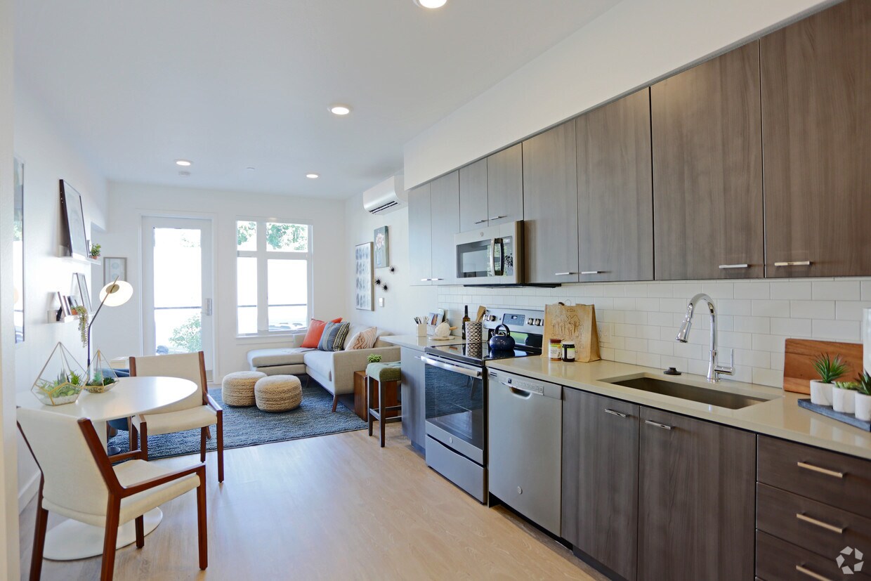 Holm at Sellwood tiene de estudios a dos-dormitorios con alquileres que varían de $1,500/mes a $1,775/mes.