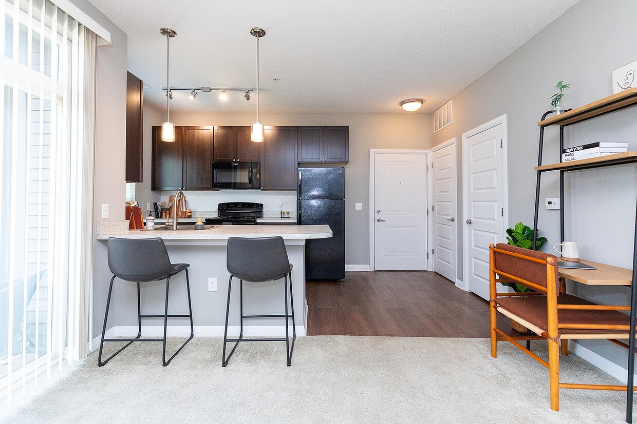 Este vibrante complejo de apartamentos cómodamente ubicado entre los populares suburbios de Columbus, Westerville y New Albany lo tiene todo: pasa un rato con tus amigos peludos en nuestro parque para perros comunitario, haz ejercicio en nuestro gimnasio completamente equipado abierto las 24 horas o disfruta de unas vacaciones en casa junto a nuestra piscina estilo centro turístico. A solo un corto viaje en auto por la calle, explora Hamilton Quarter para encontrar tiendas locales, restaurantes y lugares de entretenimiento.