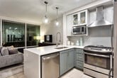 - Cocinas de diseñador que incluyen electrodomésticos de acero inoxidable GE o