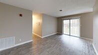 Amplia sala de estar con pisos estilo madera.
