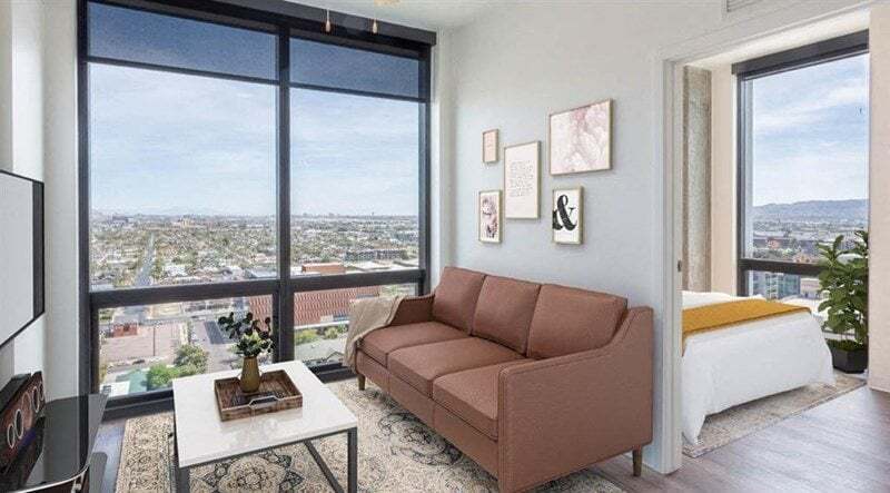 Encuentra tu apartamento de lujo en Phoenix, Arizona, ¡en JOY on 4th Apartments! JOY on 4th Apartments ofrece planos de planta tipo estudio, de 1, 2 y 3 habitaciones. Cada casa cuenta con cocinas gourmet, electrodomésticos de alta gama y amplios ventanales de piso a techo. Apreciarás las encimeras de cuarzo, los pisos de tablones estilo madera y los vestidores con sistemas de almacenamiento modulares. Mejora tu rutina con las comodidades de lujo del complejo, como el Sky Lounge con hermosas vistas al centro, la piscina en la azotea con spa, el moderno gimnasio y la terraza con fogatas y parrillas. Ubicado en el Distrito de la Innovación, JOY on 4th está cerca del Distrito de las Artes de Roosevelt Row y a poca distancia a pie de varios restaurantes y bares populares. Desplazarse es fácil gracias a los 1800 negocios cercanos, como ASU, Bank of America y Wells Fargo. Chase Field, Cityscape y Herberger Theater Center están a menos de una milla de distancia para tu entretenimiento. ¡Encuentra tu lugar en JOY on 4th Apartments en el centro de Phoenix, Arizona!