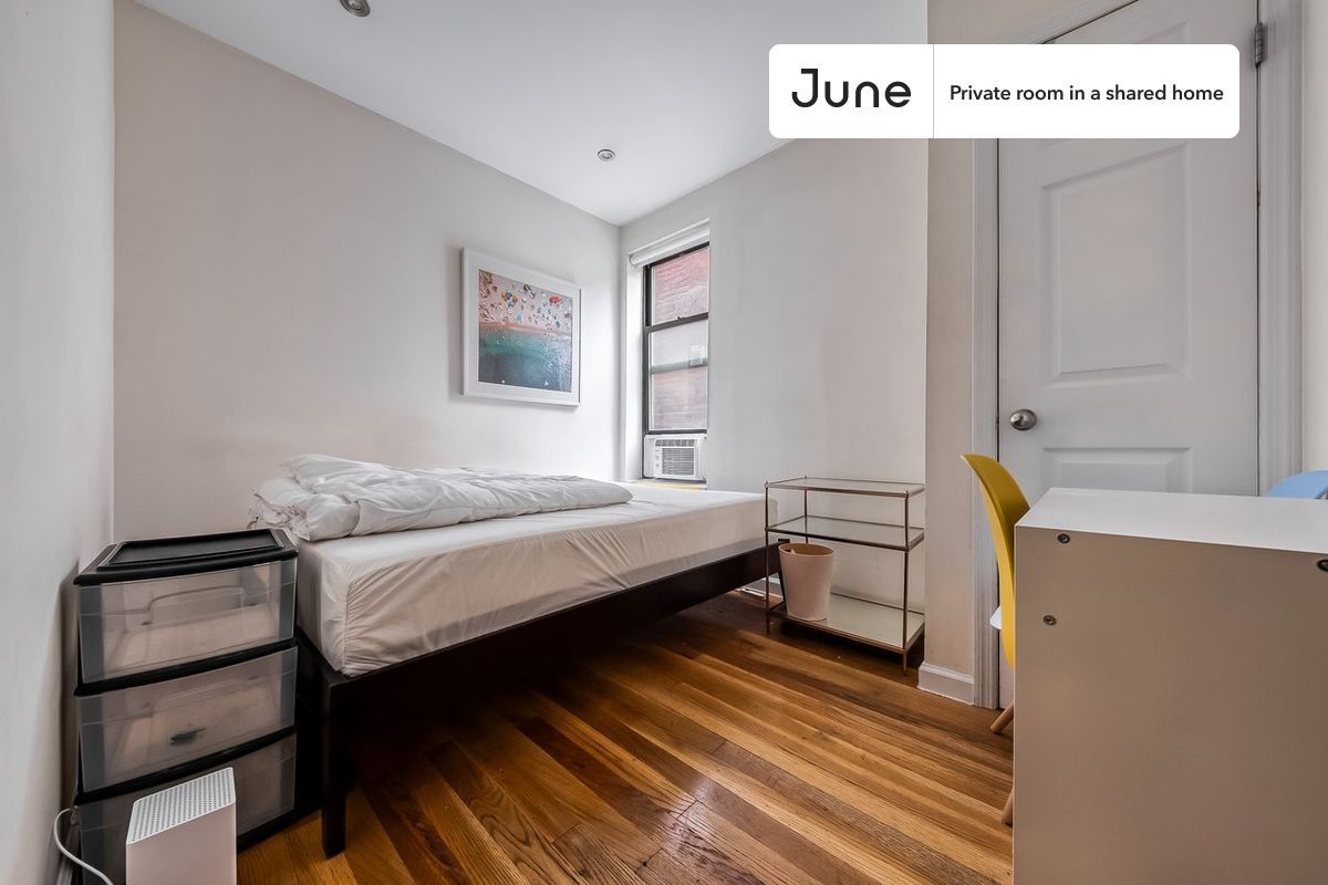 Habitación en alquiler: Múdate antes del 15 de marzo y aprovecha nuestra promoción extendida: ¡ahorra hasta $300 en tu estancia! Usa el código: "HELLOFEB". NOTA: Esta es una habitación privada en un apartamento compartido. Tendrás tu propio dormitorio y zonas comunes compartidas (cocina, baño, etc.) con otros residentes. ¡Dormitorio completo en un apartamento de 5 dormitorios y 2 baños! Esta habitación completa en Central Harlem ofrece contratos de arrendamiento flexibles, incluyendo un plazo estándar de 12 meses y opciones de hasta 18 meses. Usted elige su fecha de inicio y fin. La tarifa mensual se determina según la preferencia de mobiliario, la fecha de entrada y la fecha de salida. Hable con un representante de June para obtener recomendaciones sobre la mejor duración de estancia al mejor precio. Comodidades de esta casa: Wi-Fi - Pagado por separado (alta velocidad), Lavavajillas, Áreas comunes amuebladas, Se permiten garantes, Área de comedor, Lavandería en casa (gratis), TV montada en la pared, Pisos de madera, Horno, Refrigerador, Aire acondicionado | Aire acondicionado central, además, esta unidad está convenientemente ubicada, varios parques locales, restaurantes y bares están a solo minutos de distancia. Acerca de June Homes: Bienvenido a la experiencia de alquiler más sencilla de tu vida. Alquila apartamentos amueblados o sin amueblar con un contrato de arrendamiento flexible, que incluye un plazo estándar de 12 meses y opciones de hasta 18 meses. Como residente, tendrás acceso a asistencia 24/7 y limpieza mensual de las áreas comunes de la vivienda. Regístrate ahora para solicitar en línea tu próxima vivienda con June. ¡Bienvenidos corredores! Contáctenos para más detalles. Hable con un representante de June para obtener recomendaciones sobre la mejor duración de estadía al precio más bajo y obtenga más información sobre esta casa en el sitio web de June. Utilice este ID de listado cuando hable con el equipo de junio: #1864 B