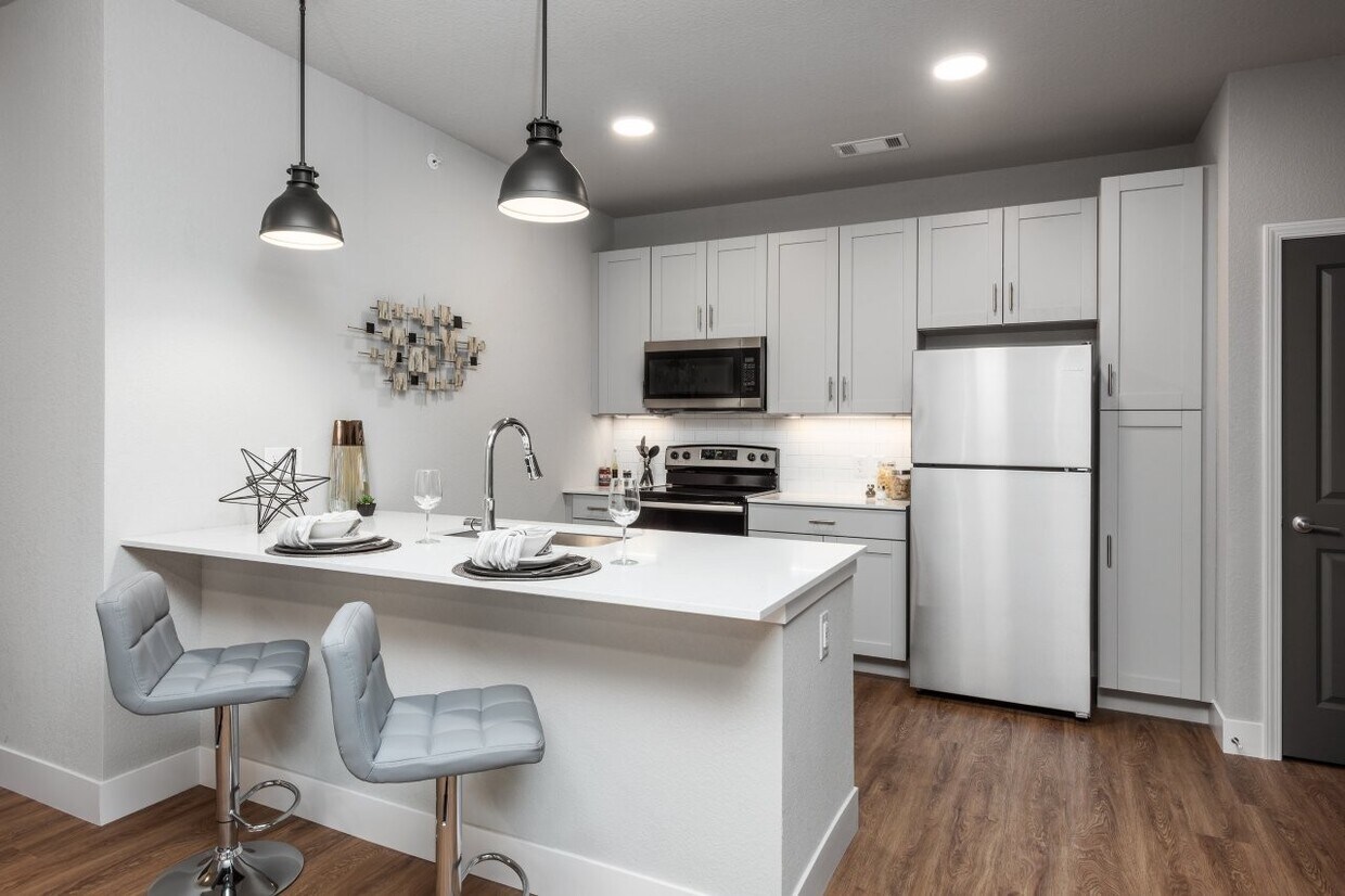 En The Station St. Peters Apartments, su satisfacción no es una cuestión de último momento, sino una prioridad. Lo notará en cada rincón, desde la piscina climatizada de agua salada y la espaciosa casa club con cafetería de especialidad, hasta los eventos para residentes y las codiciadas cocheras. En resumen, no hemos descuidado ningún detalle, incluyendo los acabados de lujo en nuestras residencias de una y dos habitaciones. Características como gabinetes de cierre suave, puertas interiores de núcleo sólido de primera calidad y pisos de tablones hacen que su estadía sea un placer. Y gracias a nuestra ubicación, tendrá muchas más razones para visitarnos. Estos apartamentos se encuentran en St. Peters, MO, junto al centro comercial Mid Rivers y rutas clave como la I-70.