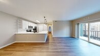 Sala de estar recientemente renovada con pisos estilo madera