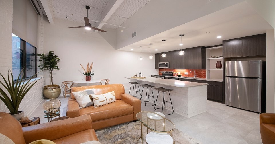 The Lofts at The East End tiene de estudios a dos-dormitorios con alquileres que varían de $1,275/mes a $2,100/mes.
