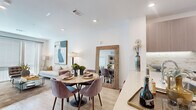 - Alturas de techo generosas que van desde los 9' a los 11' y pisos modernos de tablones anchos estilo madera en elegantes