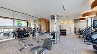 - Salón para residentes con cocina gourmet de entretenimiento y áreas de asientos sociales