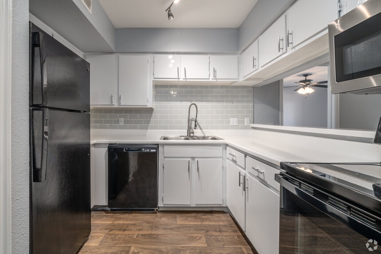 Ofrecemos amplios planos de planta de una y dos habitaciones con las mejores comodidades de su clase. Te encantará nuestra piscina estilo centro turístico, gimnasio y tintorería en el lugar. Las características de nuestros apartamentos incluyen pisos estilo madera, placa para salpicaduras de azulejos de diseñador, herrajes de níquel pulido, armarios grandes y conexiones para lavadora y secadora. Todo lo que necesitas está al alcance de tu mano.