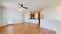 Así que redujimos el tamaño de 2800 pies cuadrados a aproximadamente 1500 pies cuadrados y todavía nos estamos adaptando, pero nos encantaron las ideas de las comodidades aquí. La piscina aquí no estará abierta hasta la próxima temporada y será climatizada, pero es bastante pequeña para el tamaño del complejo. No hay centro de negocios aquí y todavía están trabajando para que el gimnasio esté abierto las 24 horas. Parece ser un trabajo lento y en progreso. El estacionamiento es limitado después de las 5 pm, así que si tienes la suerte de conseguir un garaje, lo recomiendo. El gerente y el personal de la oficina siempre son amables. El mantenimiento es regular. Todavía se está colocando el césped, el centro comunitario acaba de abrir. Hay muchos perros aquí, grandes y pequeños, a menudo escucho a mis vecinos cuando se van. LA MAYORÍA de los residentes son amables. Está en una excelente ubicación, conveniente para todo y más barato y agradable que alquilar en Charlottesville. En general, estamos contentos aquí y lo recomendaríamos a otros. Los apartamentos son más bonitos por dentro que la mayoría, pero nos sorprendió que el único ventilador de techo esté en el dormitorio principal y que nuestro loft no tenga techos tan altos en las habitaciones. El espacio de almacenamiento es limitado, pero supongo que así es la vida en apartamentos.