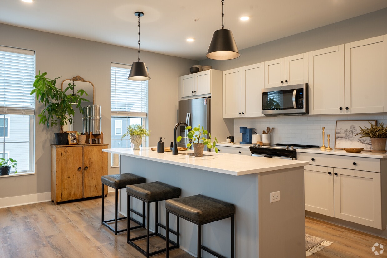 Evans Farm has one to three-bedrooms with rent ranges from $1,520/mo. to $2,945/mo.