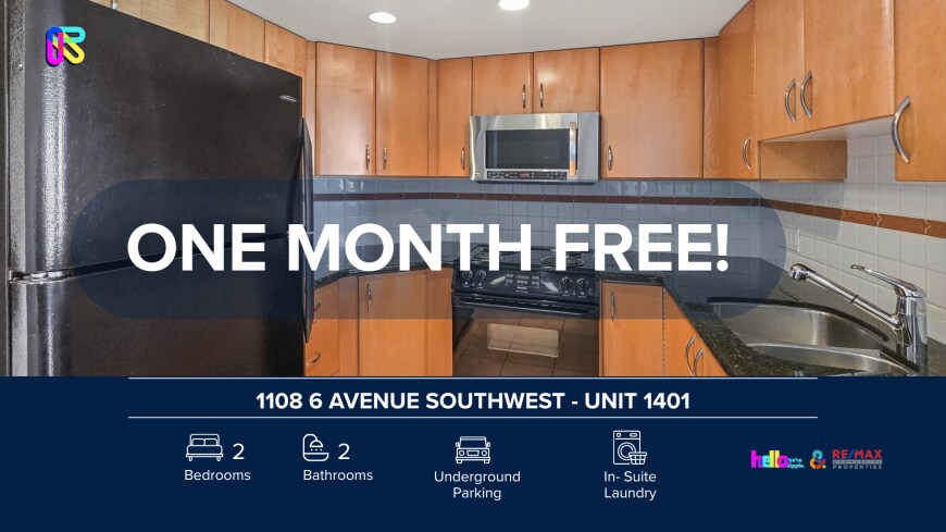 APS97086640 - Superbe appartement/condo 2 chambres + bureau, 2 salles de bain. Animaux non admis. UN MOIS GRATUIT si vous emménagez avant le 23/25 décembre. Bienvenue dans votre nouveau chez-vous au 1108 6e Avenue Sud-Ouest - Unité 1401. Cet appartement/condo moderne et bien entretenu de 2 chambres + bureau et 2 salles de bain offre confort, espace et commodités. Idéalement situé à proximité des commerces, écoles, parcs et transports en commun. _____________________________________________________________ VISITES : Journées portes ouvertes, réservez dès aujourd'hui ! Prix, disponibilité et promotions sujets à changement sans préavis. VISITE VIDÉO : Prochainement ! _____________________________________________________________ DÉTAILS DE LA PROPRIÉTÉ : - Meublé ou non meublé : Non meublé - Animaux : Animaux non admis - Fumeurs : Non-fumeur - Stationnement : Souterrain - Rangement inclus : Oui - Buanderie : Buanderie dans l’appartement - Type de gestion : Gestion complète - Durée du bail : Longue durée _____________________________________________________________ CARACTÉRISTIQUES DE L’APPARTEMENT : - Espace de vie : Salon à aire ouverte avec : Grandes fenêtres - Cuisine : Cuisine moderne avec : Nombreux rangements - Chambres : 2 avec beaucoup de rangement - Stores : Inclus pour l’intimité et le contrôle de la lumière _____________________________________________________________ SERVICES PUBLICS : - Inclus : Chauffage, Eau Outil d’estimation : _____________________________________________________________ POINTS FORTS DE L’EMPLACEMENT : - Parcs et sentiers Transports en commun à proximité Écoles et loisirs Commerces et services OFFRE UN MOIS GRATUIT : Une économie spéciale équivalente à un mois de loyer (maximum), répartie uniformément sur votre bail de 12 mois. Pour les baux d’une durée initiale inférieure à 12 mois, l’incitatif sera calculé au prorata. Réservez en ligne dès maintenant !