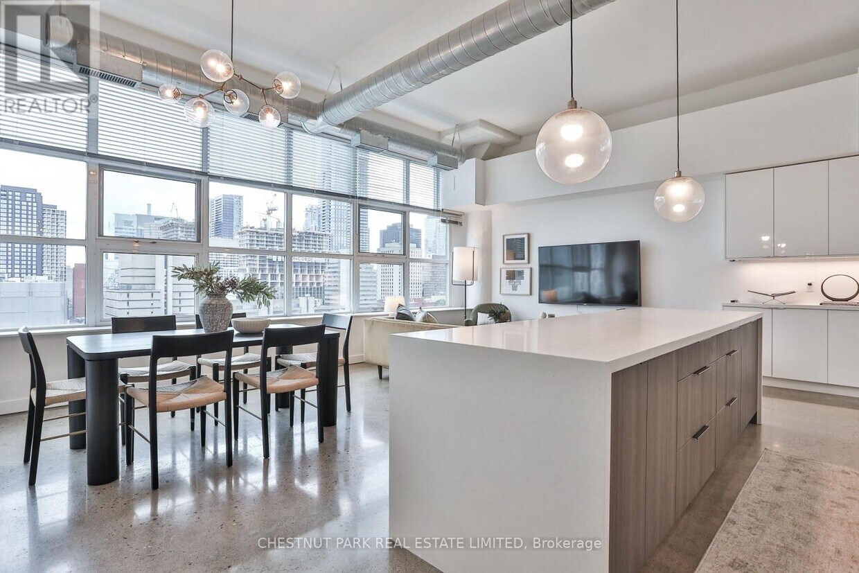 Découvrez le charme authentique d'un loft industriel dans l'emblématique Merchandise Lofts ! Une opportunité de location exceptionnelle pour un appartement clé en main dans l'un des lofts les plus prisés de Toronto, aménagé dans un ancien entrepôt. Idéalement situé dans le dynamique quartier Church-Yonge, à deux pas des boutiques, restaurants, transports en commun (TTC) et de l'Université métropolitaine de Toronto. Le loft 1013, baigné de lumière, offre 119 m² d'espace de vie contemporain et une vue imprenable sur la ville à l'ouest. Magnifiquement rénové et entretenu avec soin, cet appartement présente une esthétique saisissante avec ses hauts plafonds de 3,65 m, ses grandes fenêtres de style industriel, son sol en béton poli et ses conduits apparents. L'agencement polyvalent de deux chambres comprend de superbes portes coulissantes et un vaste espace de vie ouvert, idéal pour recevoir comme pour le quotidien. La cuisine de chef impressionne avec son grand îlot en quartz, son comptoir-lunch, ses appareils électroménagers en acier inoxydable et son buffet intégré, parfait pour un coin café ou un bar à cocktails. La suite principale comprend un grand placard à double porte et une salle de bain attenante rénovée avec douche à l'italienne surdimensionnée et meuble-lavabo sur mesure. La spacieuse deuxième chambre dispose d'un placard à double porte et donne accès à une autre élégante salle de bain. Parmi les autres atouts, on retrouve une buanderie avec rangements intégrés, de nombreux espaces de rangement et une place de stationnement. Superbement rénovée avec des finitions haut de gamme et des détails typiques des lofts, cette suite spectaculaire offre un parfait équilibre entre style, confort et commodités, en plein cœur de la ville ! (id:52069) ID : 1978483