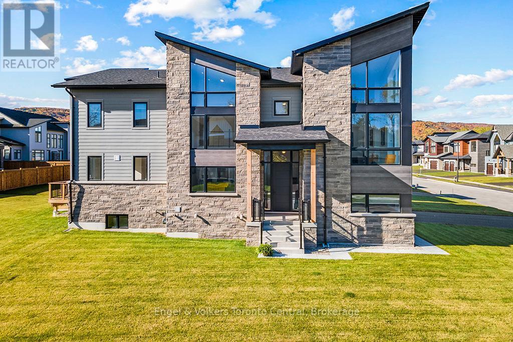 LOCATION ANNUELLE - MAISON NEUVE AU DESIGN MODERNE À BLUE MOUNTAIN - DISPONIBLE À PARTIR DU 1ER AVRIL 2026 - Cette luxueuse et très prisée maison de plain-pied, modèle Blumont Freestyle, élévation B, offre quatre chambres et quatre salles de bain, avec une superficie habitable de 370 m² (3984 pi²). Entièrement meublée, elle est prête à vous accueillir. Son somptueux salon et sa salle de jeux sont parfaits pour se détendre après une journée de ski ou de snowboard. Située sur le plus beau terrain d'angle du quartier de Blumont, elle bénéficie de dimensions généreuses : 23 m x 40 m (75 pi x 131 pi) et 36 m (118 pi) de profondeur à l'arrière. La cuisine haut de gamme est équipée de comptoirs en quartz, d'électroménagers Bosch et d'une laveuse-sécheuse LG. Parmi les autres améliorations, on retrouve des luminaires encastrés intérieurs et extérieurs, des stores sur mesure et un ouvre-porte de garage. Les sols et les salles de bain sont recouverts de carrelage de qualité supérieure. La maison est également équipée d'une arrivée de gaz. Le sous-sol aménagé est doté de grandes fenêtres et des arrivées d'eau et de gaz. Profitez de la vue panoramique sur les pistes de ski depuis la terrasse et le balcon. Cette superbe maison est nichée au pied du Blue Mountain Resort and Village, la station quatre saisons la plus populaire de l'Ontario. La communauté de Blumont bénéficie du service de navette pratique de l'Association du village de Blue Mountain, qui transporte les résidents entre le village et les pistes de ski. Imaginez-vous, vous et votre famille, profiter pleinement de cette maison spectaculaire. (id:52069) ID#: 1487830