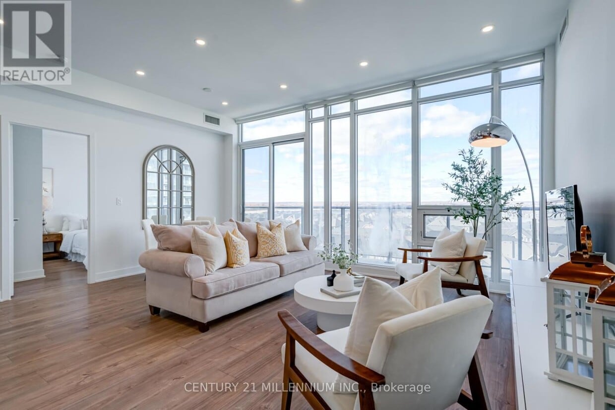 Penthouse de luxe absolument magnifique, baigné de lumière, spacieux et moderne. 2 chambres + bureau, 2 salles de bain complètes, 2 places de parking (en tandem). Superficie totale de 122 m² (dont 19 m² de balcon), plafonds de 3 m, baies vitrées, grand balcon. Bienvenue à Urban Transit Village à Brampton, entouré de vastes espaces verts protégés, dans un quartier pratique et familial ! Finitions et équipements haut de gamme exclusifs à ce penthouse. Cuisine gastronomique avec grand îlot central, luminaires suspendus, comptoirs en quartz et crédence assortie. Four encastré, micro-ondes encastré compact, lave-vaisselle encastré, réfrigérateur avec façades personnalisées s'harmonisant parfaitement avec les armoires environnantes pour un style cohérent et sophistiqué qui rehausse l'esthétique de la cuisine. Éclairage sous les armoires, spots encastrés. Stores à enrouleur haut de gamme. Spacieuse chambre principale avec accès à un balcon, luxueuse salle de bains attenante avec double vasque et douche en verre sans cadre. Accès rapide à la gare GO, aux transports en commun, aux écoles et au centre communautaire/récréatif Cassie Campbell. *** Recherche locataire de premier ordre. (id:52069) ID#: 1415517