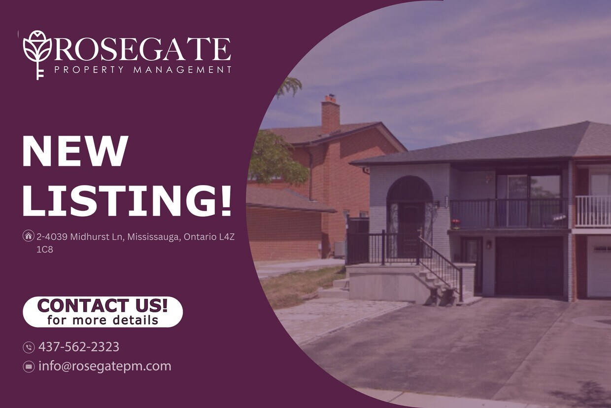 Appartement lumineux d'une chambre avec accès direct au jardin, internet et parking gratuits à Mississauga Bienvenue au 2-4039, chemin Midhurst, à Mississauga ! Ce lumineux appartement de 1 chambre et 1 salle de bain, situé au sous-sol avec accès direct au jardin, offre environ 650 pi² d’espace de vie confortable dans un quartier paisible et familial. Idéal pour les professionnels ou les couples, ce logement représente un excellent rapport qualité-prix au sein d’une propriété locative ontarienne gérée par des professionnels. Cet appartement comprend une chambre spacieuse, une salle de bains moderne et un espace de vie ouvert baigné de lumière naturelle grâce à son accès direct au jardin. Son agencement optimise le confort et la fonctionnalité, créant ainsi un cadre de vie chaleureux et accueillant au quotidien. Ce logement offre des prestations supplémentaires telles qu'un accès internet gratuit et une place de parking réservée, ce qui en fait un choix idéal pour ceux qui privilégient le confort et la connectivité. Son agencement avec accès direct au jardin favorise la ventilation et la luminosité naturelle, offrant une sensation d'espace et de luminosité plus importante que les appartements en sous-sol classiques. Géré par Rosegate Property Management, une entreprise de gestion immobilière locative de confiance en Ontario, cet appartement en sous-sol à Mississauga est à louer à proximité des parcs, des écoles, des commerces et des transports en commun. Lumineux, moderne et pratique, ce logement vous offre un cadre de vie exceptionnel. Planifiez une visite dès aujourd'hui et découvrez la qualité de la vie locative en Ontario.