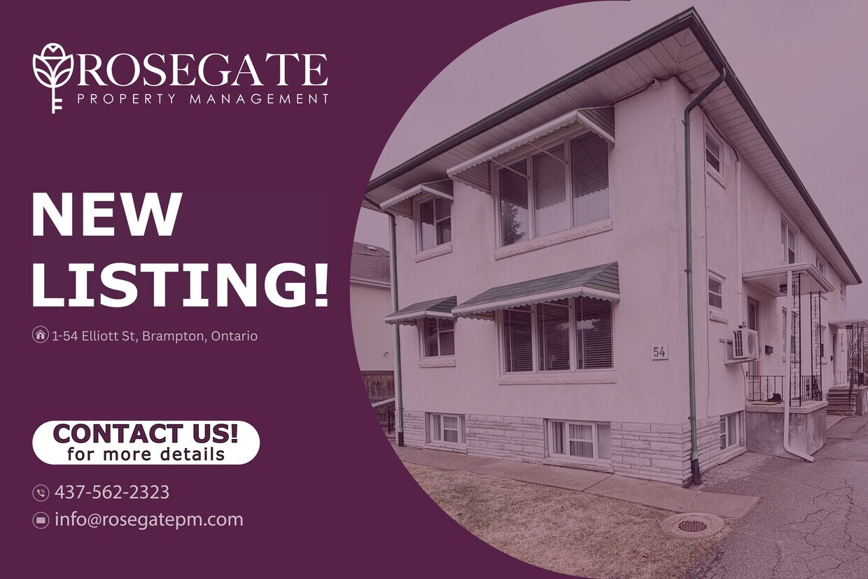 Appartement d'angle de 2 chambres avec porche et parking – Charges comprises – Brampton Bienvenue au 1-54, rue Elliott, à Brampton — un appartement d'angle bien entretenu offrant environ 750 pieds carrés d'espace de vie confortable. Cet appartement de 2 chambres et 1 salle de bain offre un agencement lumineux et fonctionnel, idéal pour les professionnels, les couples ou les petites familles. La chambre principale comprend deux dressings, offrant ainsi plus de rangement et de praticité. L'appartement comprend également le chauffage central et la climatisation, ainsi qu'un four à micro-ondes. Une buanderie commune avec lave-linge et sèche-linge est disponible sur place. Profitez d'une véranda, idéale pour se détendre et prendre l'air. Cette maison comprend une place de parking, ce qui vous facilitera la vie au quotidien. Toutes les charges sont comprises sauf l'électricité (hydroélectricité), qui sera transférée au nom du locataire, ce qui permet de simplifier et de rendre plus prévisibles la plupart des coûts mensuels. Située dans un quartier pratique de Brampton, à proximité des transports en commun, des commerces et des commodités quotidiennes, cette location gérée par des professionnels offre à la fois confort et valeur. Réservez votre visite dès aujourd'hui.