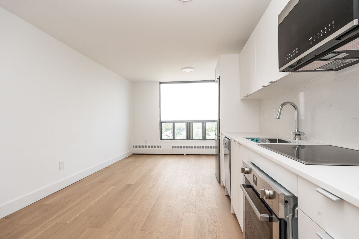 Suite rénovée d'une chambre à coucher - 1 salle de bain - située au 11e étage - environ 500 pieds carrés - disponible le 7 mars 2026 pour 1900 $ - eau et chauffage inclus dans le loyer. Caractéristiques de la suite : planchers de bois d'ingénierie, cuisine à aire ouverte, cuisinière, réfrigérateur, four, micro-ondes, lave-vaisselle, stores, douche indépendante. Caractéristiques de l'immeuble : construit en 1973, 14 étages, ascenseur, local à vélos (15 $), sécurité sur place 24 h/24, casier à colis de Postes Canada, accès contrôlé, caméras de sécurité, concierge, commodités (25 $ par mois) incluant centre de conditionnement physique, salle d'étude et billard, accès au câble et à Internet, stationnement intérieur (160 $ par mois), stationnement avec permis. Emplacement : station de métro la plus proche Osgoode (2000 mètres), tramway (150 mètres).