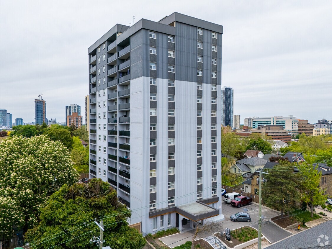 Le 86 Cedar St. S est idéalement situé à l'angle des avenues Courtland Est et Cedar Sud. Les résidents sont à quelques minutes du parc Kaufman, du parc Sandhills, du Conestoga College, du centre-ville de Kitchener, des boutiques et bien plus encore. Les résidents bénéficient de studios spacieux, de suites d'une chambre et de suites de deux chambres avec parquet stratifié moderne dans les salons et les chambres. Les cuisines ouvertes sont équipées de carrelage en céramique imitation pierre, d'élégants meubles blancs, de tiroirs à fermeture automatique et de quatre électroménagers en acier inoxydable. Certaines suites disposent de balcons privés avec d'élégants panneaux de verre.