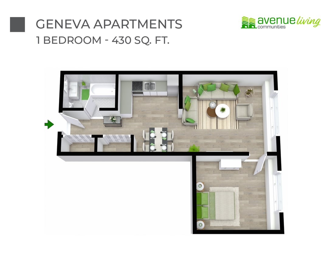 Geneva Apartments offre Offres spéciales aux candidats admissibles, avec des taux de location à partir de $1,228.
