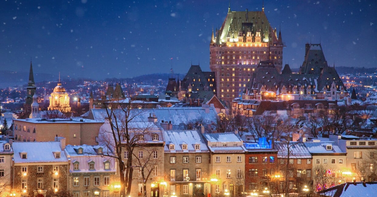 Vous vous êtes déjà demandé, les yeux plongés dans le décor hivernal magique d’une boule à neige, s’il existait un endroit aussi charmant, avec des toits enneigés, des horloges et des clochers d’église? Bienvenue à Québec! En plus de ressembler à un pays des merveilles hivernal pendant les mois les plus froids, cette belle ville est la capitale du Québec. Elle est nichée sur la rive du fleuve Saint-Laurent et déborde d’architecture historique, de charmantes zones commerçantes et de paysages à couper le souffle qui vous émerveilleront tout au long de l’année.