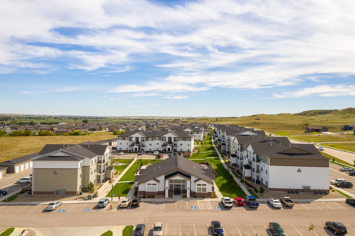 Located at the entrance to the Black Hills, Rapid City combines outdoor recreation with urban living. The average rent for a one-bedroom apartment is $1,181, and housing options span from downtown communities to suburban neighborhoods. The western part of the city, built along the Red Valley between the Black Hills foothills and Dakota Hogback, features hillside residences, while the eastern section extends through Rapid Creek's valley. Notable residential areas include the northern corridor near Interstate 90 and the southern neighborhoods overlooking the Black Hills.
