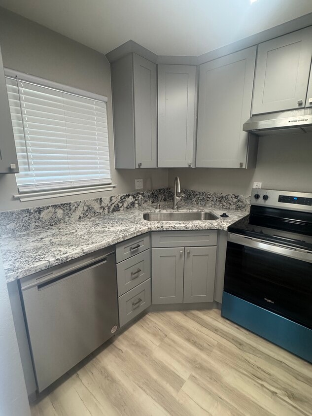 Small 13 unit complex with both 2 level townhome style and 1 level style. These units rarely come available but as they do, we complete a full remodel! The new units include a dishwasher, garbage disposal, refrigerator/freezer combo and stove, along with a washer and dryer in each unit. New remodels include new cabinets, floors, lighting, ceiling fans, counters, windows, window coverings, doors, trip and more. We are talking about a complete remodel. We remodeled with granite countertops as well for that touch of elegance. It makes it nice to come home to a beautiful apartment. Currently our latest remodel is coming available March 2026. They say dynamite comes in small packages and this unit packs a punch. It's beautiful.