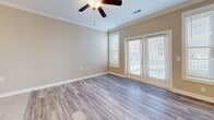Groves at Waters Edge has one to three-bedrooms with rent ranges from $1,445/mo. to $2,175/mo.