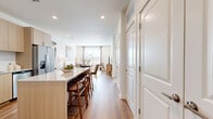 - Generous ceiling heights and modern wood-style flooring throughout