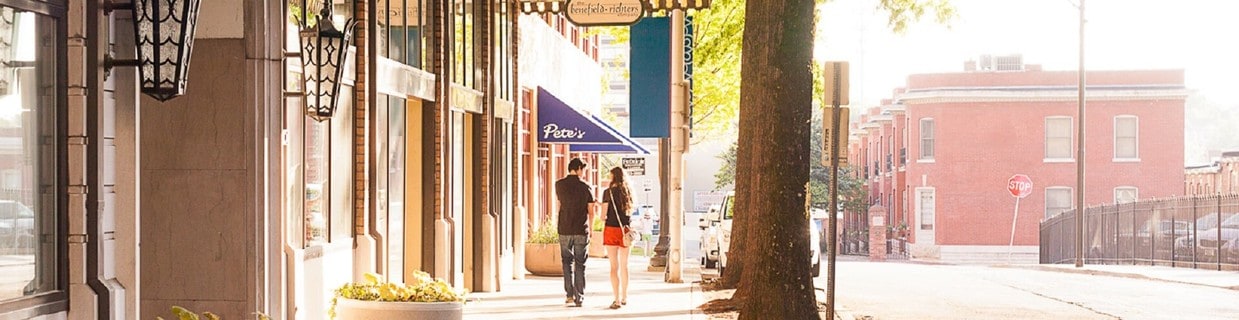 The 100 Block of Knoxville's historic Gay Street is filled with shops and restaurants