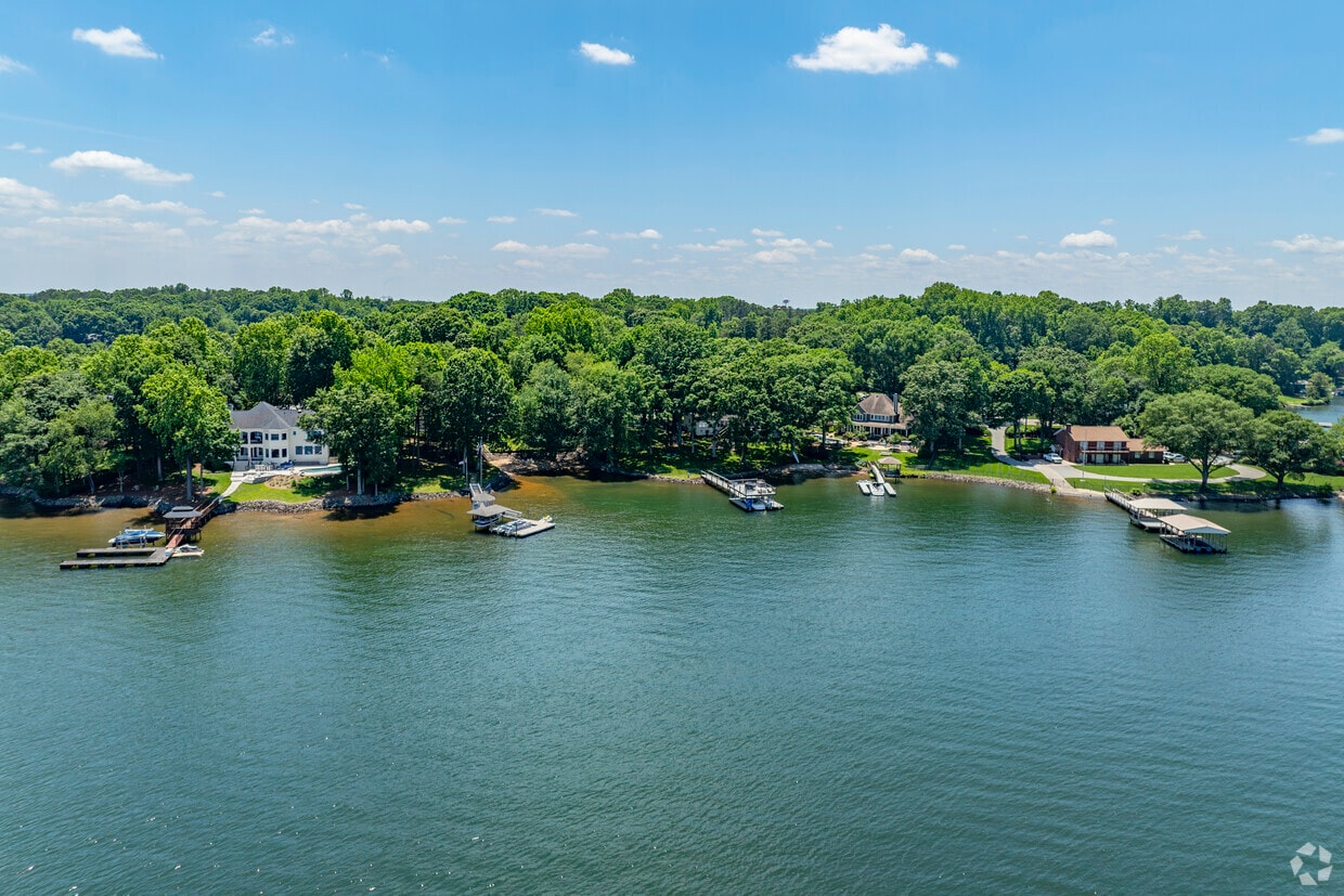An aerial view of Lake Norman from a beatiful brick community in Huntersville.
