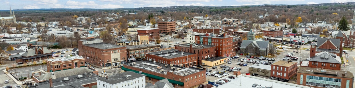 Downtown Leominster borders Main Street, lined with various shops and restaurants.