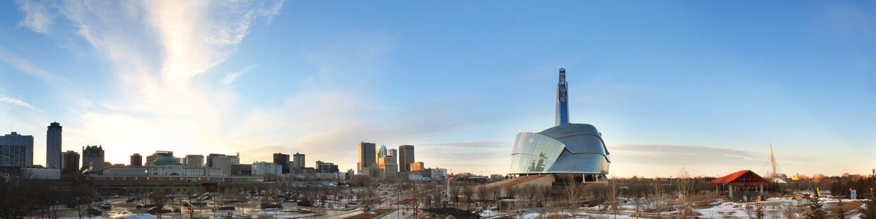 Downtown cityscape in the winter with a view of Canadian Museum for Human Rights.