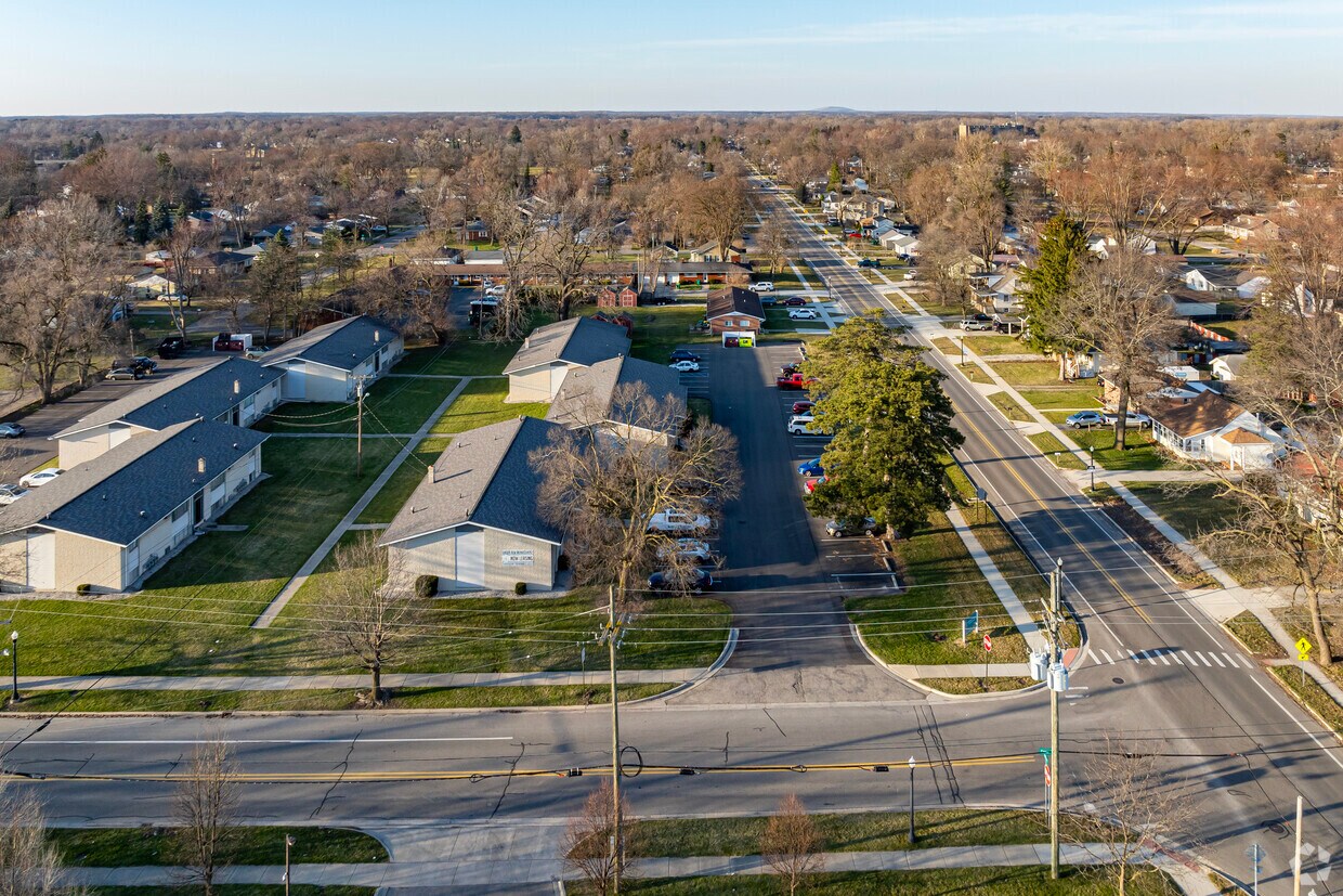 Aerial view of East Willow neighborhood with Willow Run Airport in the distance.