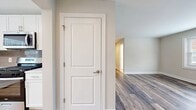 - Gray wood plank flooring