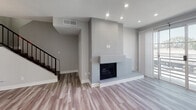 Living Room with hardwood floors, fireplace, and direct patio access.