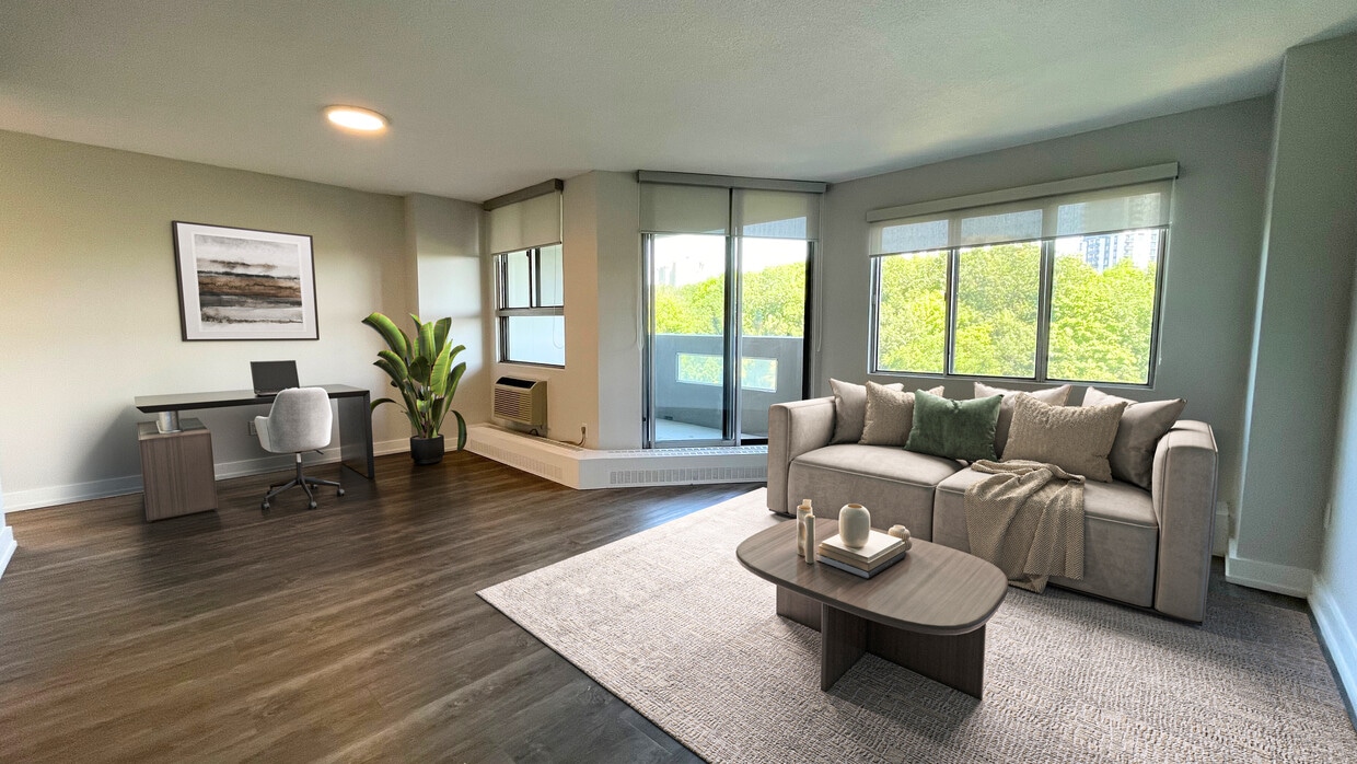 The Valleywoods has one to three-bedrooms with rent ranges from C$1,950/mo. to C$3,300/mo.